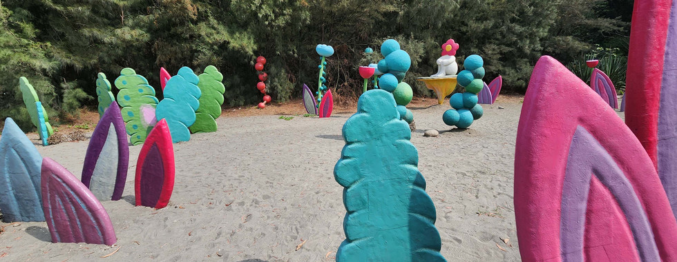 再走進去些,喔!藝術季主視覺造景有被完整留存,最意外的是以「永續生態系統的濱海花卉植栽」為核心概念的《覓境》作品也被原地保留,旁邊還設計了灑水系統,看得出有運作的痕跡。活動結束後仍有維護,算是少見的破除「人走茶涼」荒景進行式。
