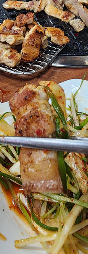 烤肉,特別是有人幫你烤,更好吃!是說,不知道是不是因為是在濟州島,靠海,店家送上一碗特別熬煮的沙丁魚醬,海味特濃鹹,沾著豬肉吃,味道特別。