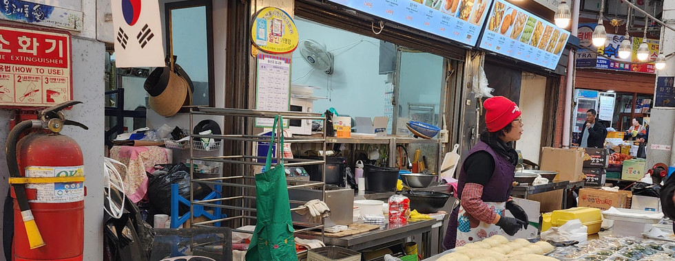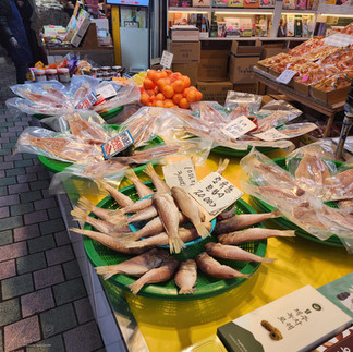 戲劇《我的藍調時光》的場景之一,劇中,恩喜就在這裡賣白帶魚,同樣的市場外,東昔擺攤賣衣服。雖然抵達時接近中午,場內依舊熱鬧,活力十足,空間寬敞,乾淨舒服,販售物品分門別類的清楚,連販售衣服也要用顏色分類掛著。