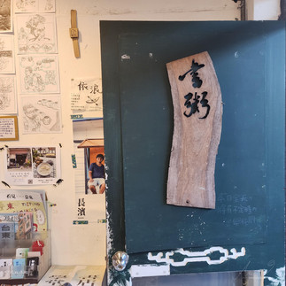 抵達書店門口,即有寫著「杭州亞運進行中!一起為台灣選手加油!」的迎賓木板向人問候,脱鞋入內,舒適的沙發即在空間中央,分有上層新書、下層二手書的書牆大落眼前,書櫃在符合人體工學高度位置擺上懷舊玻璃花窗,黑底黃字寫著「小時不讀書,長大開書店」,令人莞爾一笑。轉身一看,另面牆貼滿漫畫家的作品,下方桌面擺有寄售的地方特產與手作品,再入內走則有單人座的漫畫閱讀區。整體空間小巧溫馨,氣氛溫熱,的確是個安靜看書的舒適空間。再一回望,櫃檯裡竟是一張熟悉臉孔,原來是關懷盃志工夥伴,巧遇的驚喜,拍照留念與短暫寒暄,為生命旅程畫上美麗的驚嘆號。